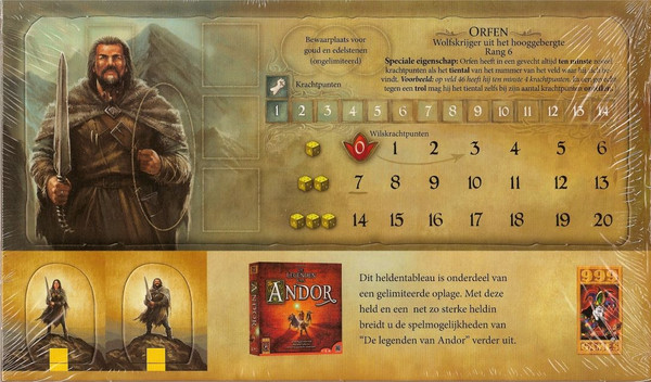 This very limited hero board gives you the opportunity to add another hero to the Legend of Andor base game. Being yellow it replaces the dwarf hero board and also uses the material of the dwarf. It does therefor not add a fifth player to the game.