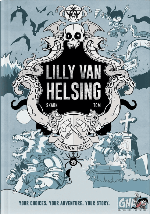 "Chasseur de Monstres" is a comic combined with a game, one title in a series subtitled "The comic in which you are the hero". You embody a character in a immersive story in which your choices guide your progress. You have a character sheet akin to those used in role-playing games that tracks your possessions, your special abilities, your coins, and your victory points. In general, gameplay consists in following the comic's panels — which contain clues, riddles and traps — and making choices about where to go and what to do, while using your visual perception to collect clues and be smart enough to resolve the riddles. As in any game, you can lose — sometimes really badly!