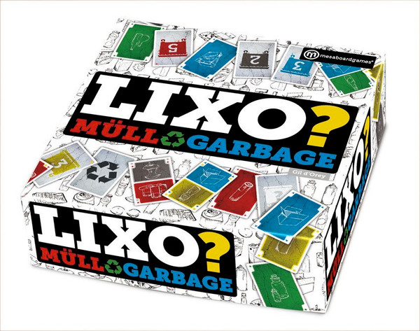 This is a cardgame about the domestic garbage and the respective colours. There are 2 kinds of cards: CONTAINER cards and GARBAGE cards, each in the possible 5 colours referred above.