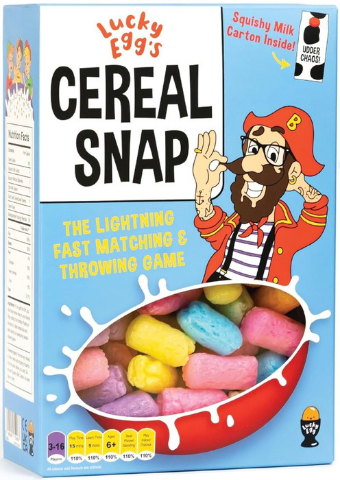 Race other players to match your cereal cards, the first player with no cards left slams the buzzer to start the Udder Chaos battle. The player who slammed the buzzer picks up the squishy Udder Chaos milk carton and throws it at other players. The last player to be tagged by the milk carton when the buzzer goes moo, loses that round.