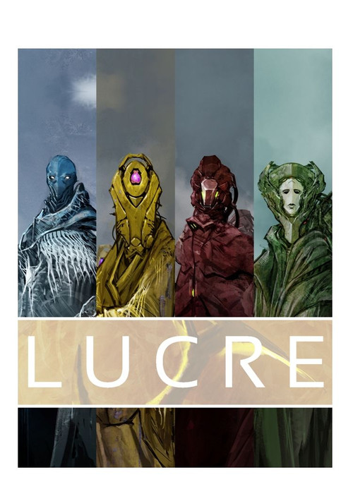 LUCRE is a trick taking card game for 4 players. The nameless Guilds care about one thing: coins. Each player controls a single Guild, and will play cards from their Guild deck (13 cards, each with a Value of 1-13 and worth 1-3 coins, each with no Value and 1 coin on the back) in an attempt to acquire more coins.
