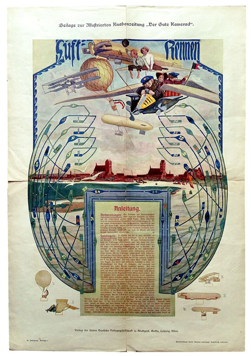 Each player gets a special air vehicle on a separate track. The slower vehicles get a start bonus. The players take turns to roll and move. The first player to arrive on space 50 on his track wins the game. On some spaces events hinder or benefit the players.