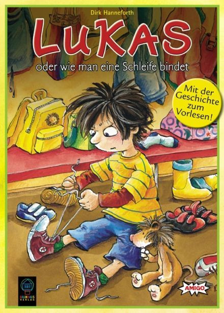 Dirk Hanneforth invented this teaching game for the very young. Each child gets a colored shoe as well as a matching shoelace. The shoe has holes which have colored edges. Now, the color die comes into play. The first player tries his luck: If the die shows his own color, then he gets to thread his shoelace into one of the next two free holes in his shoe. If it’s a different color, then he has to look carefully: If red was rolled and a free hole is also red, then he gets to thread the lace. If, however, none of the next holes are red, then he gets to give away the color by choosing an opponent who needs the color and can use it to continue threading his lace. As soon as a child has succeeded in completely threading his shoelace, he wins the game. If he can then also tie a knot, he’s laughing. The others can practice via the illustrated instructions.