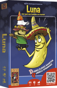 In Luna, each player tries to get rid of his cards as fast as possible. Each card shows a moon or a hat. One card is turned over, and players simulteanously look through their cards for two or more cards with a matching object, and place them in apile. Now, other players may lay cards in this pile as long as the target object on the layout card is similar to that on the top card from the deck.