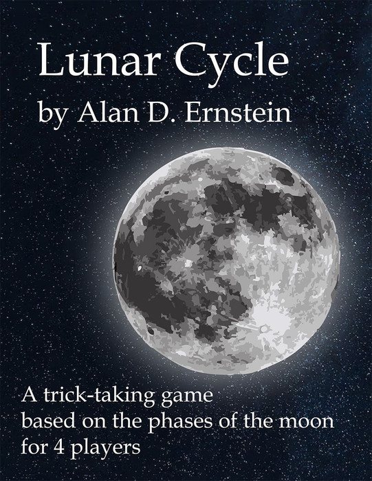 Lunar Cycle is a trick-taking card game where the value of the lowest card increases after each trick--aligning with the phases of the moon. There are 5 suits of 8 cards. One suit randomly becomes the "Exchange" suit. This suit cannot be played but a player holding exchange cards may swap them with cards in a pool on the table.