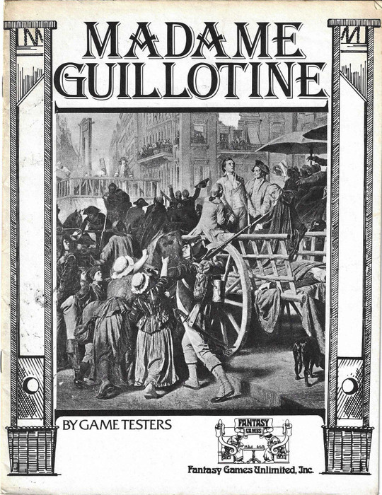 Madame Guillotine is a multi-player simulation of the brutal power struggle taking place in Paris at the time of the French Revolution (aka The Terror), The players representing notable personalities of the time, distribute "influence points" with the aim of capturing the support of various sections of the society. While so doing, they must try and maneuver their opponents into untenable positions, deal with military and social crises, while still remaining on good terms with the populace.