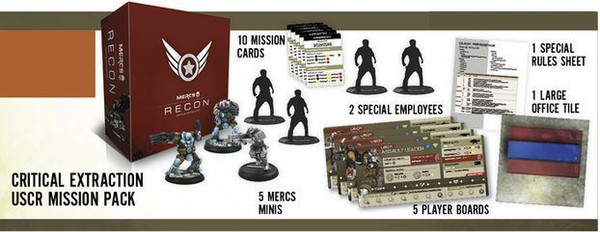Critical Extraction adds MERCS from the USCR faction to MERCS: Recon. Included are five USCR MERCS and their corresponding player boards and special rules. In addition, the mission pack contains new missions and a new tile.
