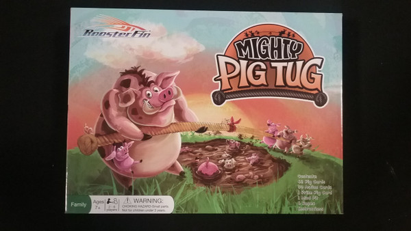 Ropes equal to the number of players extend outward from a mud pit. Each rope has room for three pigs. Players manage a hand of three cards and take turns either adding a pig card with a point value of from 5 to 50 to one of the spaces on their ropes or playing an action card. A fourth pig added to a rope causes another pig on that rope to fall into the mud pit. The game ends when the Mighty Pig Tug card is drawn; at that time, the player whose pigs on his rope sum to the highest value wins.