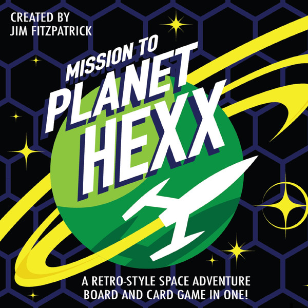 Mission to Planet Hexx! is a retro-sci-fi themed, map-building, dice-rolling card game.