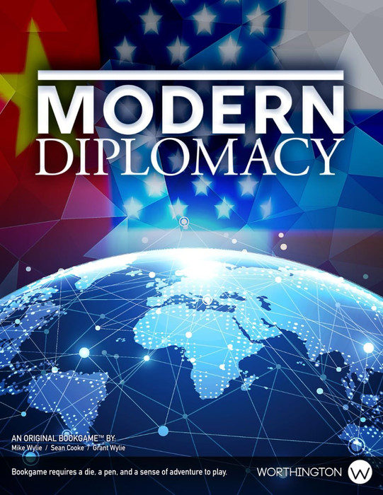 Turn the page to the complex world of Modern Diplomacy, the ultimate solitaire bookgame that challenges you while navigating the complex landscape of global pressure and flash points. As the leader of the United States, you'll engage in strategic power plays using Economic, Diplomatic, and Military abilities on the world stage. Competing against a formidable AI opponent representing the combined might of Russia and China, you'll need to outsmart, outplan, and ultimately outmaneuver them to achieve world domination.
