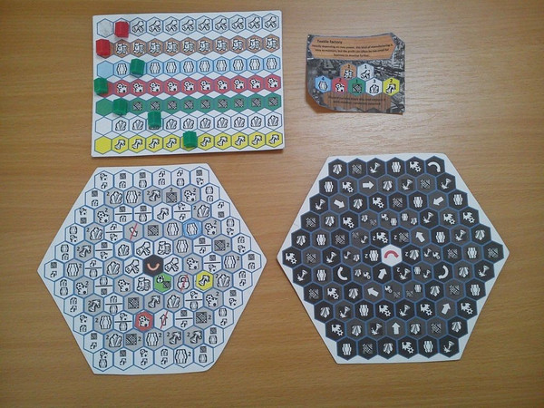Player’s goal is to build from one to three factories using resources available or produced in ever changing environment. But be warned, each production comes with the price. And there are also taxes to be paid to the government…