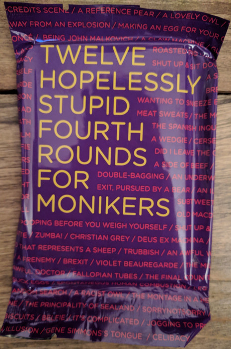 It was a Kickstarter exclusive (at least initially) for the "Monikers: The Shut Up & Sit Down Nonsense Box" campaign.