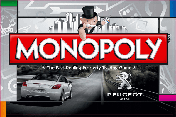 The classic Monopoly with constructions and other elements from Peugeot, a car company.