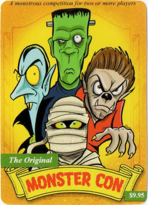 The 4 decks include the original with Dracula, the Mummy, Frankie, and the Werewolf; the Return of Monster Con with the Amorphous Blob, Alien Changeling, Invisible Man, and Swampy; Son of Monster Con with the Bride of Frankenstein, Undertaker, Phantom of the Opera, and Ghost of Room 13, and; the Cthulhu Pack with the Cthulhu Cultist, Innsmuoth Cousin, Pickman's Apprentice, and Nyarlathotep.
