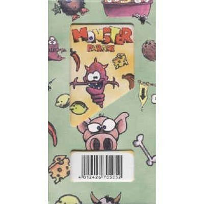 Monster Parade shows a series of monsters (repeated several times throughout the deck, with different colors and favorite foods). Each player receives nine cards, revealing the first and placing it in front of them. Players then simultaneously pick up their remaining cards and try to build a parade in front of them by playing cards to the left or right of previously-played cards by matching either the monster, the monster color, or the favorite food. Cards may also be played on opponents' parades using the same rules. The first player out of cards is the winner.