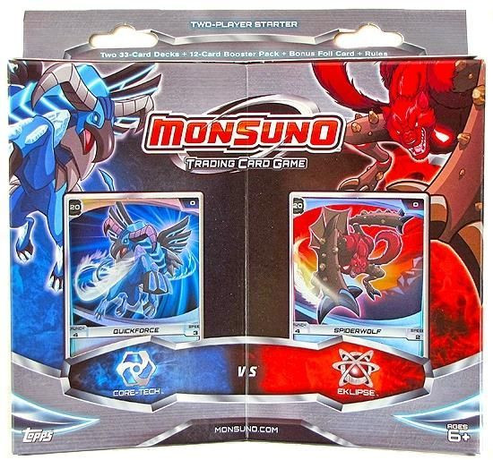 Monsuno is a two-player trading card game (TCG). Each player has three Monsuno creatures, and a hand of Strike cards used for summoning Monsuno from the "clip" or for enabling a Monsuno to attack.