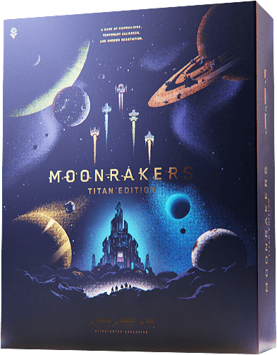 The Titan big box includes the content from Moonrakers expansions Binding Ties, Overload and Nomad as well as the Holographic Upgrade Pack. But it does not contain the base game.