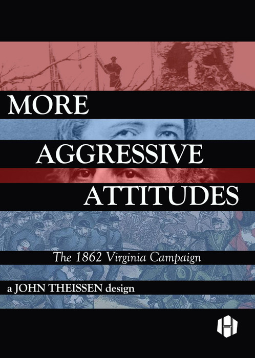 More Aggressive Attitudes is an operational-level game for two players exploring the 1862 Virginia Campaign. Each hex represents a span of five miles, and each turn is a day. The counter density is low - just a handful of units per side - and the rules are simple, but nuanced. The focus is squarely on the operational level, and the ability of your subordinates to carry out your orders - to march a given distance in a day, to avoid battle, or to coordinate their attacks - is not entirely within your control. This uncertainty is simulated by a series of die rolls. (Don't worry about "wristage"; in practice, it's only a few rolls per turn.)