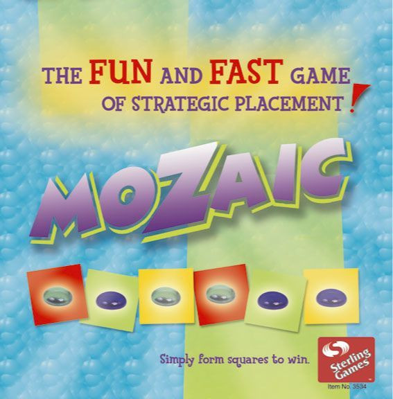 Mozaic ... two players take turns drawing gemstones, one at a time, from the bag and placing them on the empty board to form point-scoring squares.