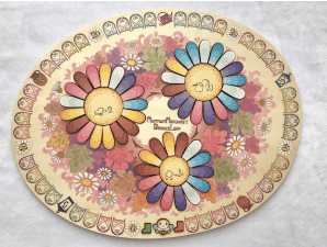 Mum-Mum Margaret: Bronze Leaf is a two-player game that is semi-handmade by a team of artisans. Each player takes turns to draw colorful petals and place them onto a spot with the same symbol. If you follow a certain order to put petals, you can place multiple of them in one turn for more points. Billy the honey bee will fly around each turn from a flower to another. Placing a petal onto the spot where he is stopped will activate special effect(s) depending on the definition of the flower he is stopping. The player with the most points wins the game.