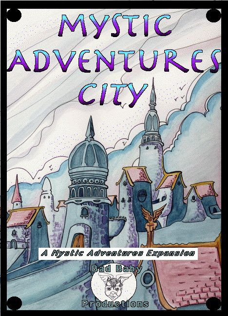 Mystic Adventure, City, takes one of the most important places in the Mystic Adventures game, the city of Mordenhelm, and expands upon what you can do there. No longer is it just a small region among many, but now a place all to itself. Enter the walls of this great city and you can find all you might need in your quest to become the ruler of the lands about you. Wealth, power, lore and danger all wait for those that brave the many city streets and back allies of this great metropolis.