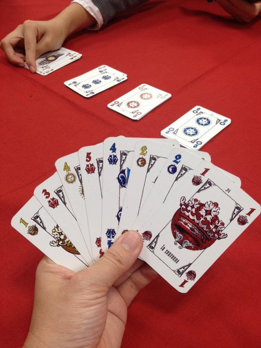 Mystique Pillars is a game for The Mystique Deck, in which 2–6 players compete to play all the cards from their hands onto four growing pillars of cards. The game is played in two phases: