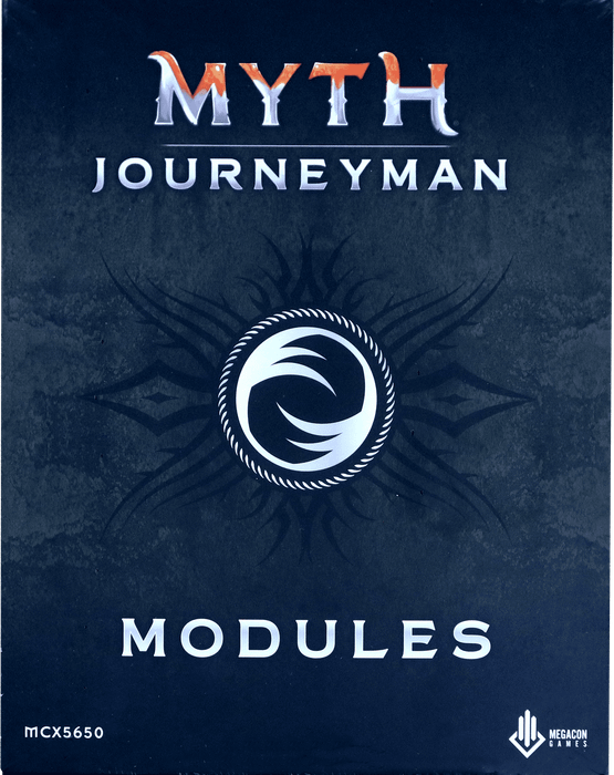 A box containing the printed materials for all 8 Myth Modules offered during the Journeyman kickstarter. Miniatures are not included.
