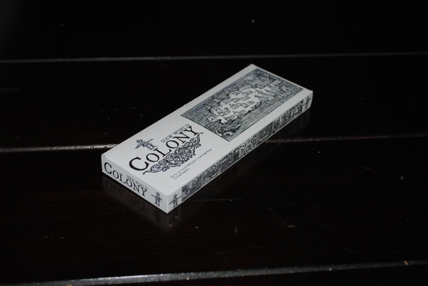 Play: Deal one card from the bottom of the deck face-up on top of the Colony Map, centered in the game title section, with the 3 numbers facing up. Then deal a second card face up on top of the first so the 3 punched holes align with the 3 numbers underneath. These 3 numbers are used to determine resource values during the action on the top card.