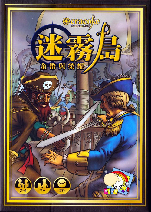 In Ocracoke: Gold and Glory, if you are the navy, you fight for the glory of the country, trying to collect enough treasure that you can place Blackbeard in jail. Otherwise, you collect as many gold coins as you can, then run away from the turmoil. In game terms, you want to collect five coins before anyone else, and you do this by taking actions: