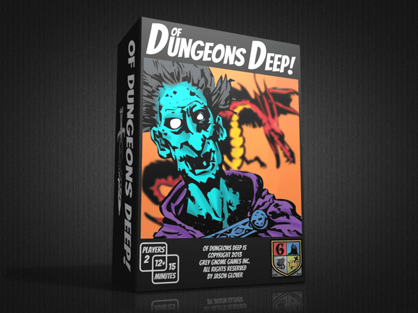 The creators of numerous successful Kickstarters, including Four Tribes and Dig Down Dwarf, bring you a new blind bidding and deck-building dungeon delving card game. Of Dungeons Deep! is a fusion of many mechanics and was inspired by such games as Smash Up!, Dungeon Raiders, Cutthroat Caverns, and Friday and is set in an amazingly illustrated world that is whimsical, with just a touch of darkness. Of Dungeons Deep! takes a brave new look at a classic theme, is easy to learn, and employs simultaneous play which equates to almost zero downtime for players!