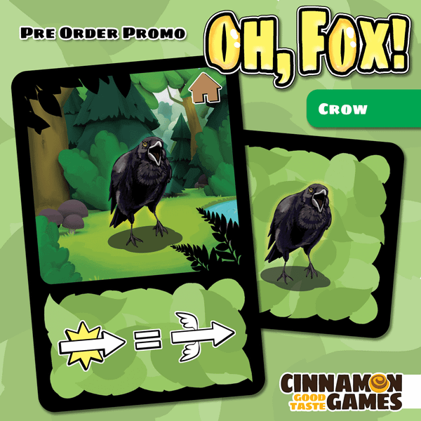 The crow promo adds one additional prey animal to the game. It includes the crow animal card and the crow identity card.
