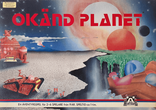 The game only exists in Swedish. Okänd planet = Unknown planet. Publishing year was 1984.