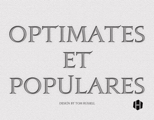 We are talking, of course, about the Roman Republic. OPTIMATES ET POPULARES is a political game for two players, in which players fight for the primacy and dominance of their ideology. The Populares ("populists") pursue a liberal and egalitarian agenda that seeks to better the lives of the poor through measures such as land redistribution, debt relief, and welfare programs. The Optimates (or "best men") aim to thwart this progress, maintaining the traditional rights and privileges of the wealthy elites. Both players seek to win elections and pass laws, and to prevent their opponents from doing the same, using every tool at their disposal - building alliances through influential Senators, buying loyalties, inciting mob violence, and proscription - state-sanctioned murder.