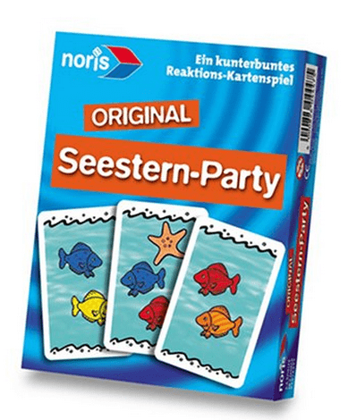 Seesternparty is an action card game. On a row of cards showing several fishes in different colours, players have to find pairs of fishes of the same colour, swimming in the same direction.