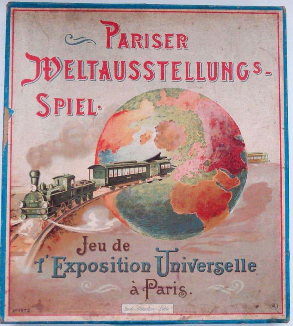 "Jeu de l'Exposition Universelle a Paris". Typical vintage roll and move board game, where players should cross the route (through a world's fair held in Paris, France, from 14 April to 12 November 1900) with 30 stops. The player, who reach the end of the route first, wins the game.