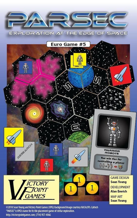 Players explore space, placing new tiles and moving their Ship counter, placing their Robot counters on strategic locations. During a Scoring Round, Planets score Victory points, Nebulas garner Research tokens for new abilities. Asteroids and a presence on opponent-dominated planets garner Credits used to purchase additional Ship moves. After the last planet is completed, a final scoring takes place and the winner determined.