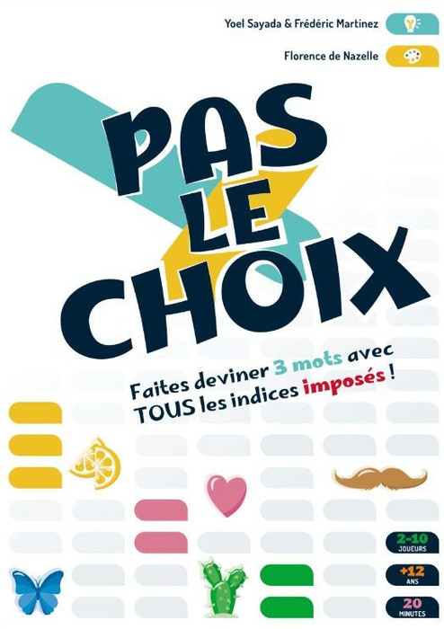 Pas le Choix is a game where you have to guess 3 words out of 12 using 7 given clues. You must use all 7 clues, even the ones that make the task more difficult.