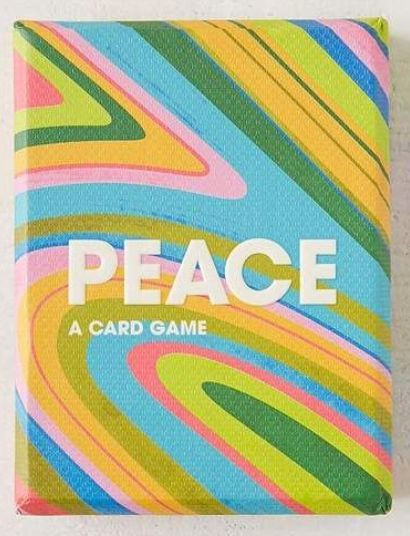 Make peace, not war! This hopeful twist on the classic game of "War" challenges players to outdo each other with increasingly generous acts of kindness. Each card depicts a good deed ranging from simple things (I picked you flowers) to grand gestures (I love you). The most thoughtful act wins the round and if there's a tie, players must find peace.