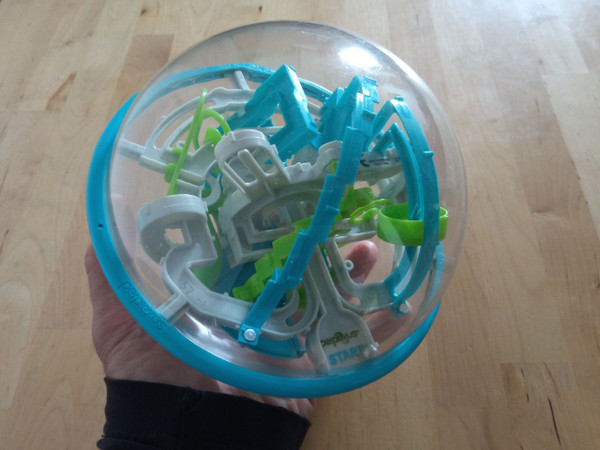 Perplexus Rebel is a solo dexterity 3-D maze game where players must maneuver a small marble around challenging barriers inside a transparent sphere, but where a wrong move can spell failure and require you to return to the start. With 70 barriers to overcome
