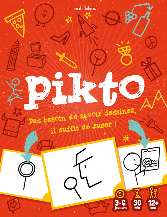 In Pikto, you want to draw pictures so that whoever is guessing this round might be able to identify your drawing — but will you go for a simple image that the guesser might have first crack at (and miss), or a more detailed image that might have you waiting to see whether someone else's image is guessed first?