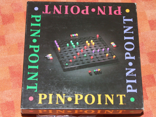Pin Point is an abstract strategy game for 2-4 players which is played on a black plastic board with a 10x10 grid. The playing pieces are 100 capsules with a colour on one end and black on the other end. (25 each of green, orange, purple and red).