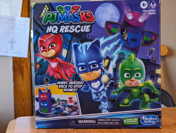 "Romeo has taken over PJ masks HQ! It's up to you to save the day! Race your hero through the city and up headquarters!"