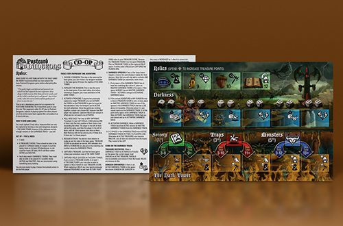 This additional new card includes another diabolical dungeon, treasures, and rules changes for playing the game together cooperatively to defeat the DARK LORD, an evil presence invading from a neighboring postcard.
