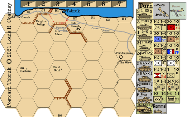 A very fast and simple (but subtle) minimalist rendition of the 5 (possible) major battles around Tobruk during World War 2, Jan 41-Nov 42.