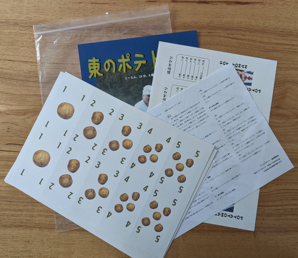Potato Man of the East uses a deck of cards of 1 through 5, and a few wild cards, and is played as a memory game. The cards are shuffled and set out on the table in a grid.