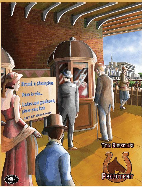 In Prepotent, players breed, bet on, and race horses. Designed by Tom Russell, Prepotent blends the short term tactical thinking found in its streamlined racing mechanisms with the long term strategy of horse breeding. Additional intrigue is found in the betting mechanisms: Do you want your horse to strive for only second place so the opponents lose their bets?