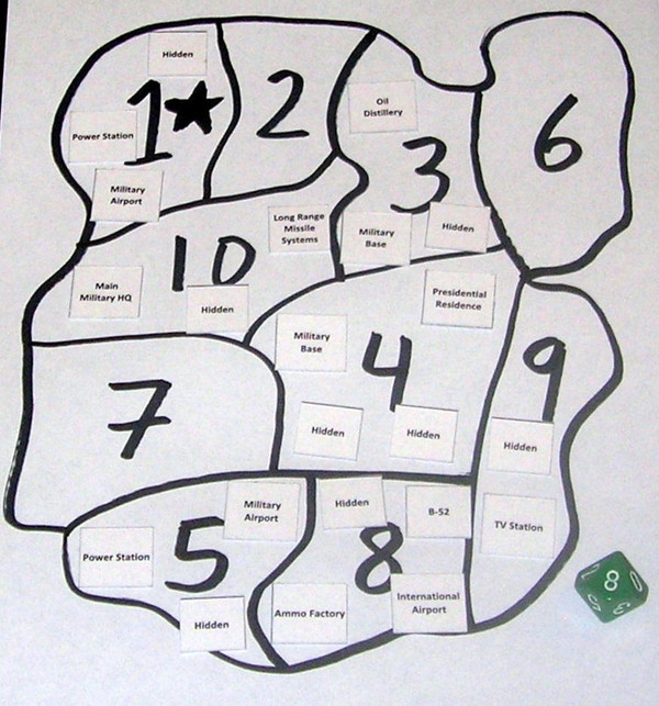 "Solo Dice Game. Simulation of an Air War between USA and an imaginary Middle Eastern Nation."