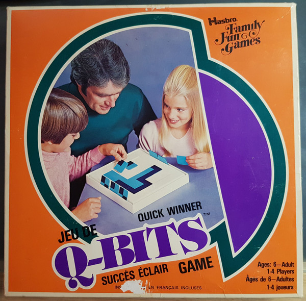 Q-Bits is played with 16 tiles divided into sections of two colors. (These are similar if not identical to Pantactic Squares.)