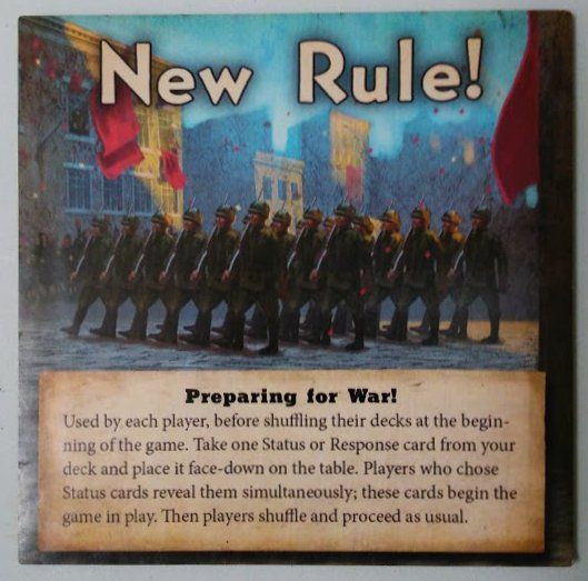 Used by each player, before shuffling their decks at the beginning of the game, Take one Status or Response card from your deck and place it face-down on the table. Players who chose Status cards reveal them simultaneously; these cards begin the game in play. Then players shuffle and proceed as usual.