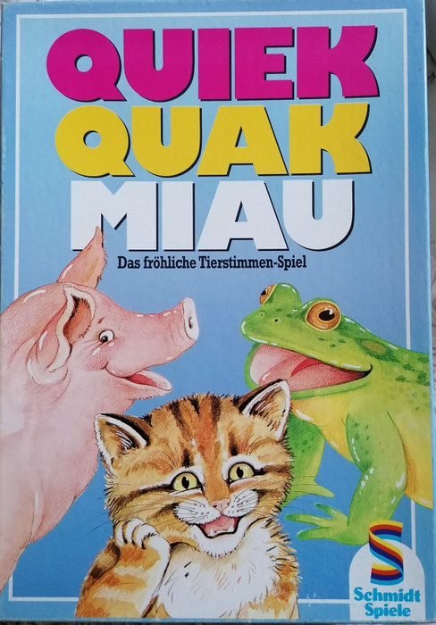 Players roll 2 dice - 1 with color dots and 1 with arrows. Players then match up the color and arrow direction to the rows and columns on the their player board and make the sound of the animal they find.